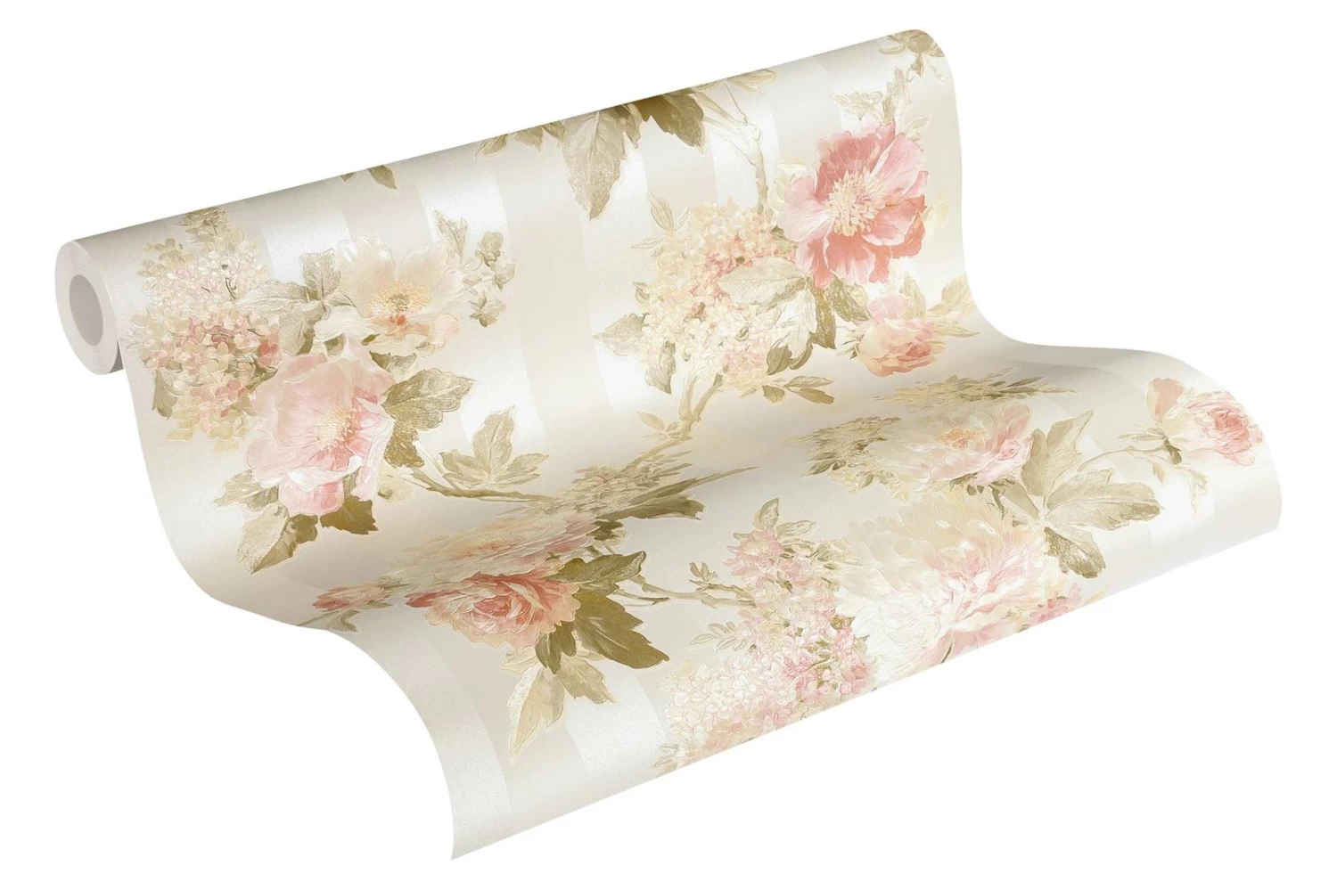 Tapete Vlies Romantico A.S. Création Streifen mit Blumen creme-beige rosa Glitzer 30446-1 | 304461