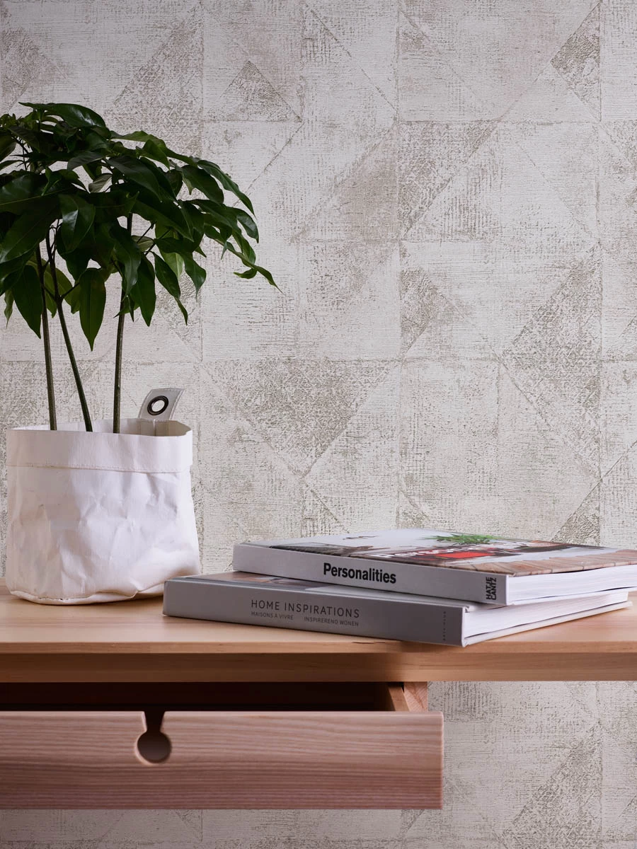 Diese moderne Tapete aus der Kollektion Profitex von AS Creation steht für zeitgemäßes Wohnen mit einer gewissen eleganten Note. So bringst du ganz einfach frischen Wind in deine vier Wände. Die Tapete 38976-3 zeigt ein geometrisches Muster mit Dreiecken in Betonoptik in weiß mit Metallic-Effekt in Silber. Entdecke auch die Anderen Tapeten der Kollektion Profitex von AS Creation.