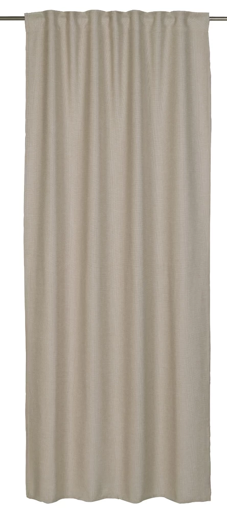 Sanfte Töne schlägt dieser fix und fertig genähte Vorhangschal an, der in zurückhaltendem Beige und natürlicher Leinenoptik nicht bloß neugierige Blicke von außen abhält, sondern sich besonders edel vor jedem Fenster einfügt. Verdeckte Schlaufen und ein Kräuselband sorgen für eine ganz einfache Anbringung, die Länge lässt sich individuell mit einem Bügelband verändern. Fertigdekoration mit verdeckten Schlaufen und Kräuselband, 255 x 140 cm
