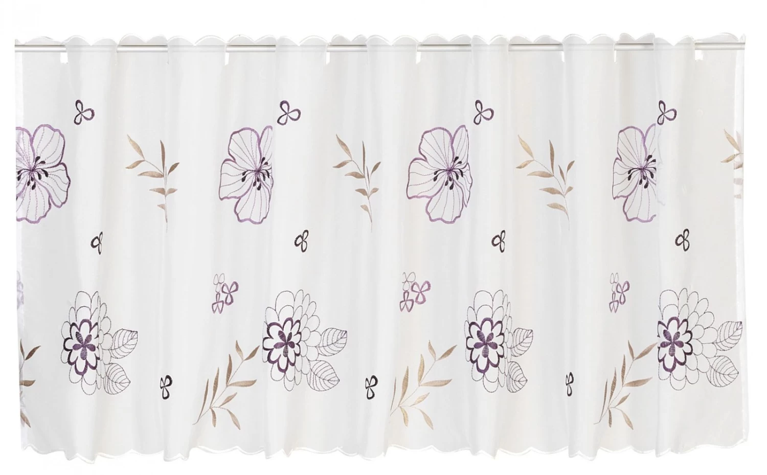 Transparente Bistrogardine Javine mit Blumenmuster in lila von Elbersdrucke – 179960