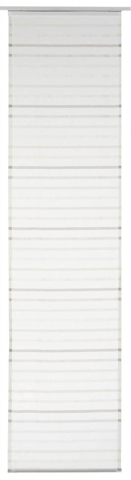 Ein frisch-beiges Streifendesign durchzieht den weißfarbenen Hintergrund des Flächenvorhanges My Way von Elbersdrucke. Damit verkörpert der 60×245 cm große Schiebevorhang junges und modernes Wohnen, bei dem die Grenzen der Gestaltungsmöglichkeiten nur in der eigenen Vorstellungskraft liegen. Die Gardine aus 100 %-igem strahlt eine besondere Lichtstimmung aus und sorgt für Wohlbefinden.span>