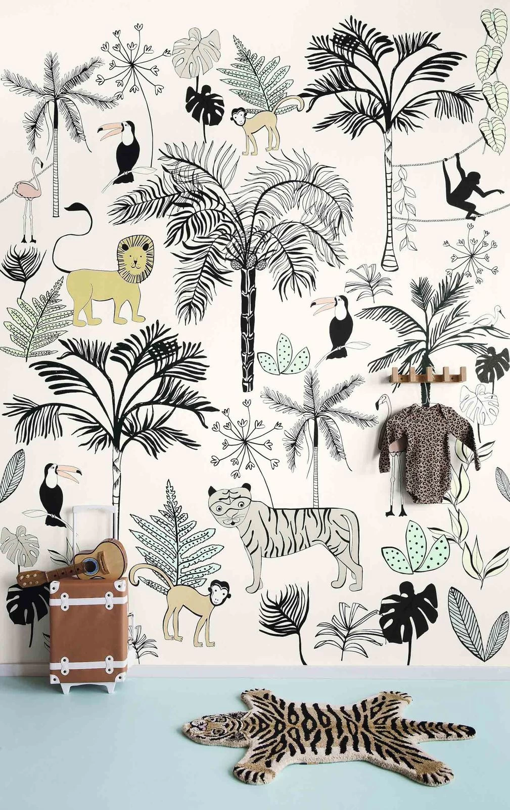 Die Kollektion Bambino XVIII von Rasch ist genau das Richtige für kleine Träumer! Lass sie in mitten von Dschungeltieren und Häschen herumtoben und gestalte die Wände des Kinderzimmers mit diesen warmherzigen und verspielten Tapeten. Die niedlichen Illustrationen der Fototapete 842173 mit ihren Dschungeltieren mit Löwen, Affen, Tiger und Flamingos in den Farben weiß und hellblau lassen Kinderherzen höherschlagen und sorgen für eine kuschelige Wohlfühl-Atmosphäre im Reich der Kleinen. In dem tierreichen Dschungel fühlen sich die Tiere sichtlich wohl. Mach dich auf ins Dschungelabenteuer und entdecke Tiger, Affen und Tukans. Dabei überzeugt die Fototapete nicht nur mit ihrem beeindruckenden Stil, sondern auch mit ihren Eigenschaften. Die Tapete ist waschbeständig, hat eine gute Lichtbeständigkeit und ist nass entfernbar.
