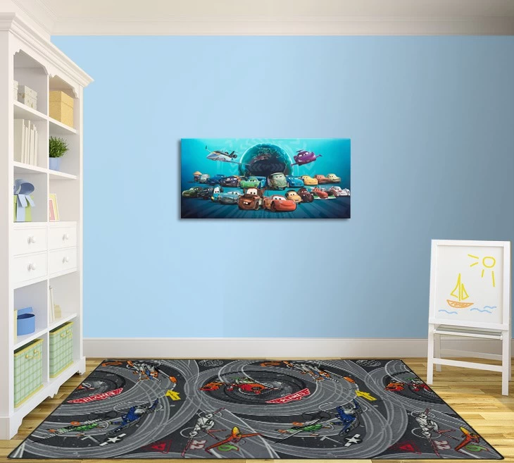 Auf diesem Kinderteppich finden Ihre Kleinen alle Helden aus Disney Pixars „Planes“ wieder! Ideal zum Spielen und Träumen, lädt dieser Teppich doch zu gemeinsamen Rundflügen mit dem Filmhelden Dusty und seinen Freunden ein. Der Oberseite besteht aus 100% Polyamid-Faser und ist daher besonders strapazierfähig und robust – also der ideale Spielteppich für junge, wilde Disney-Piloten!