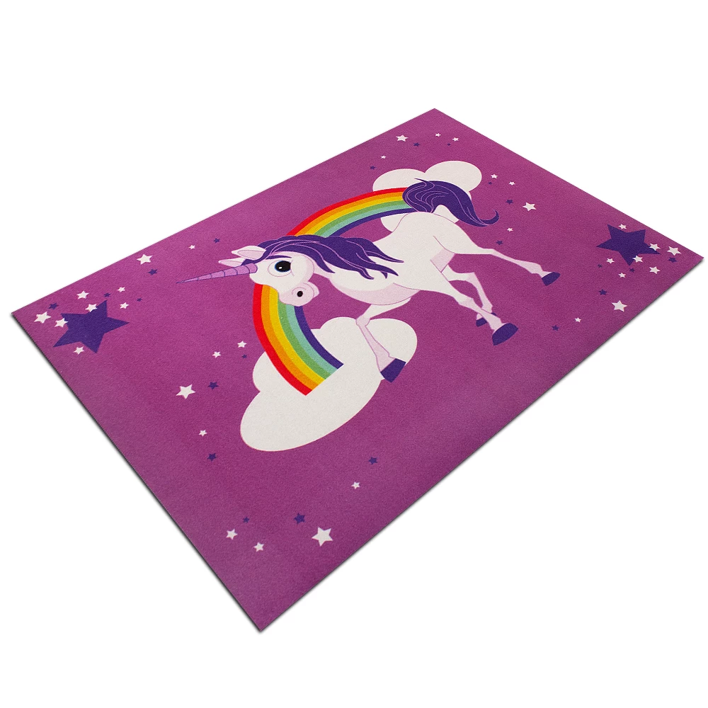 - Produktart: waschbarer und rutschhemmender Spielteppich für Kinder mit Einhorn, Regenbogen und Sternen Motiv