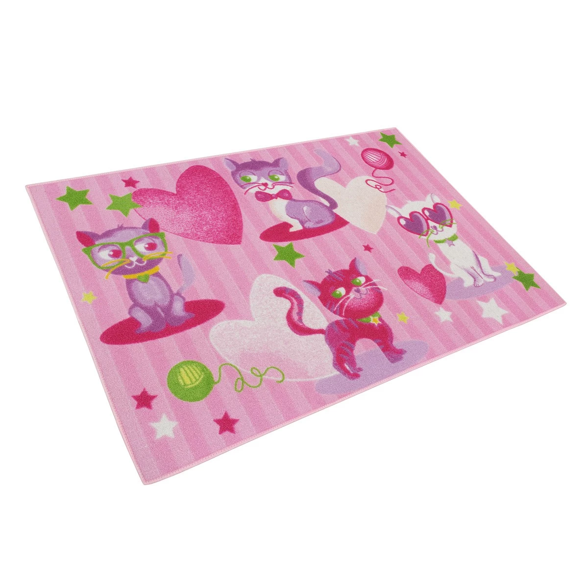 Die süßen Kätzchen verzaubern jedes Kinderherz! Besonders für die kleinen Tierliebhaber unter uns ist dieser Kinderteppich die ideale Verschönerung für das Kinderzimmer. Gleich vier der kuscheligen Haustierchen sorgen für ein Lächeln im Gesicht der Kleinen.