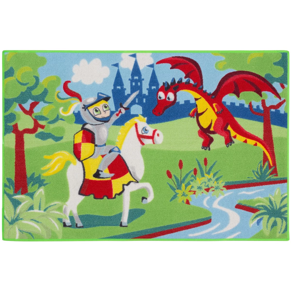 Die Welt der Ritter und Drachen faszinierte Kinder und die, die mal welche waren schon immer. Lassen Sie Ihre Kleinen in die Traumwelt eintauchen mit diesem tollen Kinderteppich. Der mutige Ritter nimmt den Kampf gegen den roten Drachen auf und lädt ihre Kinder in seine fantastische Phantasiewelt ein.