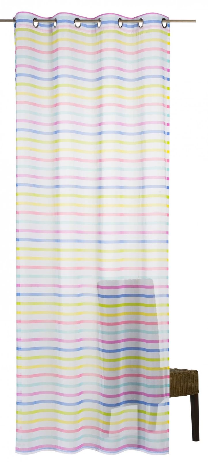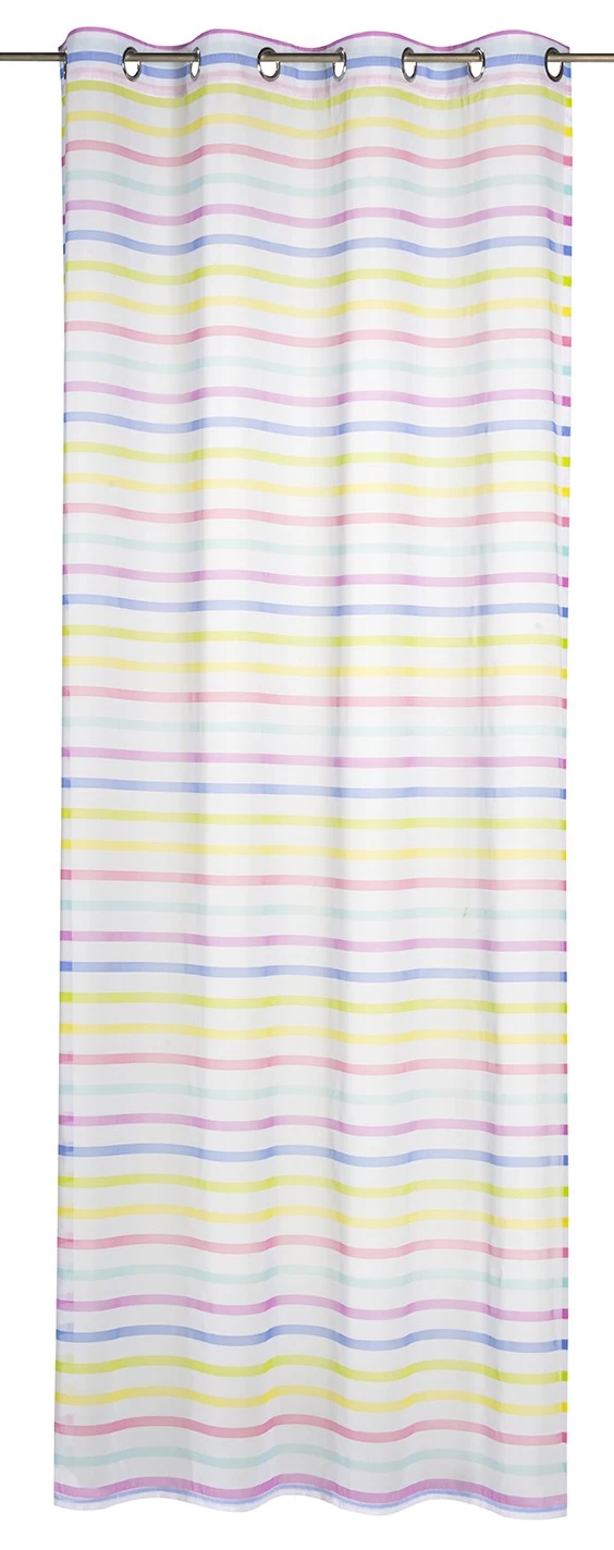 Auffällige Querstreifen zieren den Ösenschal aus der Kollektion Kid’s Club von Elbersdrucke und machen ihn zu etwas ganz besonderem. Das zeitlose Design bietet viele Kombinationsmöglichkeiten und lässt somit viel Raum für Ihre eigenen Wohnideen. Hergestellt aus einem feinen Voile verzaubert dieser Ösenschal jedes Fenster zu einem echten Hingucker. Im Lieferumfang sind Metallösen zum einfachen und sicheren befestigen sowie ein Bügelband zum individuellen kürzen der Gardine enthalten.