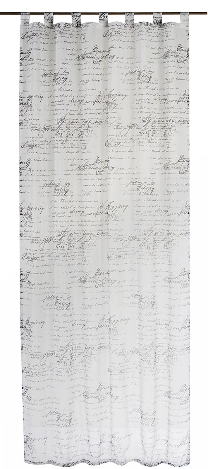 Mit dem transparenten Schlaufenschal 198701 von Elbersdrucke aus der Serie „Loveletter“ werten Sie Ihren Fensterbereich im Wohn- und Schlafzimmer stilvoll auf. Der Vorhang hat ein Stoffmaß von ca. 255 x 140 cm (LxB) und ist zu 100% aus Polyester gefertigt. Das Produkt kann bei 30°C im Schonwaschgang schnell und einfach gereinigt werden. Die hochwertige Fensterdekoration bezaubert mit einem romantischen, aufgedruckten Schreibschrift-Design.