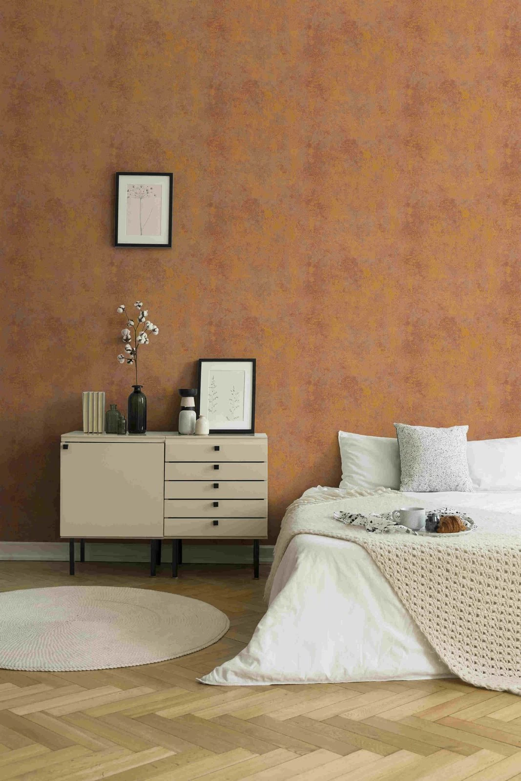 Tapete Vlies New Walls Einfarbig mit Struktur orange kupfer Glanz 37425-3 | 374253 livingwalls