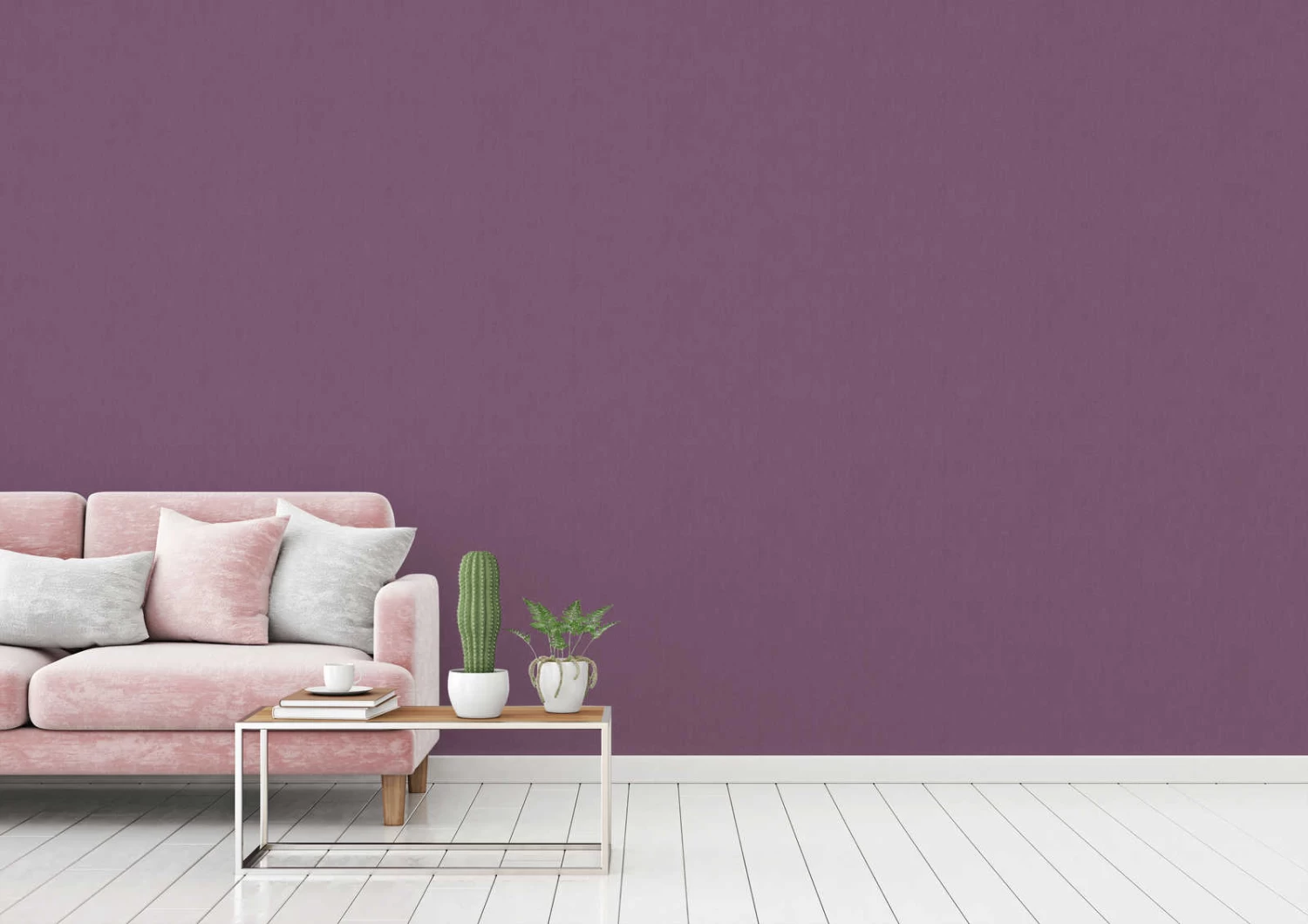 Es wird blumig – die Mustertapeten aus der Kollektion Floral Impression von Architects Paper lassen mit ihren duftenden floralen Designs die Natur bei dir einziehen – Die Vliestapete 37702-3 im textilen Uni-Design in lila passt sich hervorragend den floralen Mustern an und bringt ein romantisches Feeling in dein Zuhause.
