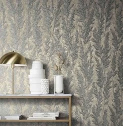Ein Thema, mit dem wir uns alle auseinander setzen müssen ist der aktuelle Klimawandel und was es bedeutet nachhaltiger zu Leben. Der Designer Felix Diener aus dem Hause Marburg beschäftigte sich intensiv mit diesem Thema und hat in seiner Kollektion Natural Opulence mit vielen verschiedenen Naturmaterialien wunderbare Muster designt. Die Vliestapete 85730 mit Gräser-Pflanzen in grau, blau schimmert edel und lädt zum Entspannen ein.