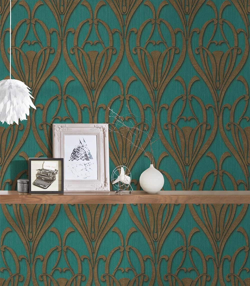 Die edlen Tapeten von livingwall aus der Vliestapeten-Kollektion Mata Hari erstrahlen in einem brillanten Glanz. Charmante Muster und exzellente Effekte passen zu einem barocken Einrichtungsstil. Die Vliestapete 38091-5 mit klassischen Ornamenten in grün, gold bringt mit ihren Glanz-Akzenten eine völlig neue Ausstrahlung in deine eigenen vier Wände.