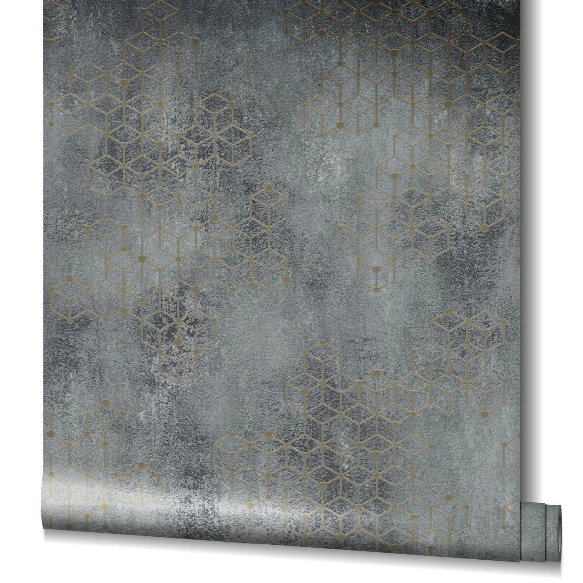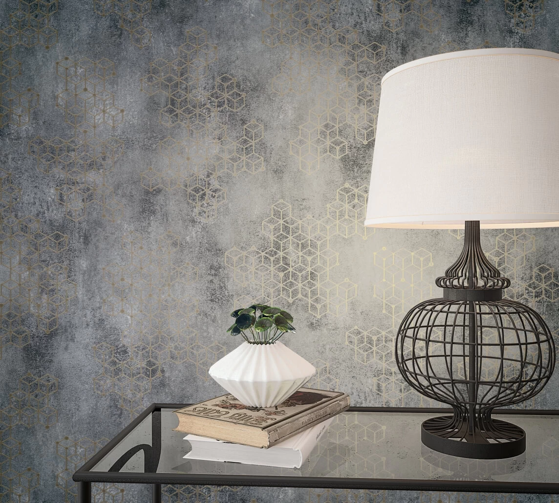 Tapete Vlies Würfel Putz blau-grau gold Glanz Novamur Hailey 82240