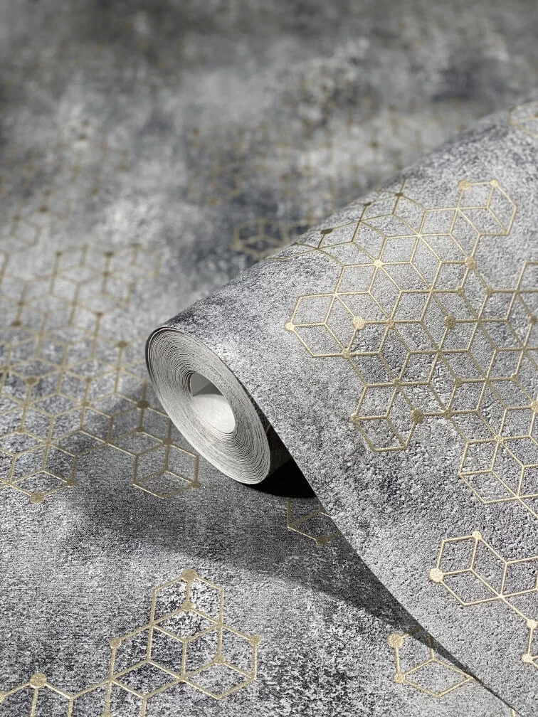 Novamur bietet mit den Vliestapeten aus der Kollektion „Hailey“ eine Mischung aus verschiedenen Mustertapeten und Uni-Designs. Die Tapete 82240 mit grafischen Würfeln aufPutz-Optik in blau-grau gold verziert dezent deine Wände und verleiht deinem Zuhause einen liebevolle Charme.