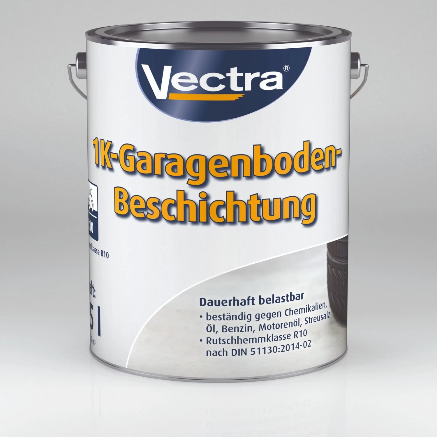 Ein-Komponenten Garagenbodenfarbe von Vectra ist in 2 Graustufen mit seidenmattem Finish erhältlich. Die Bodenbeschichtung ist eine hochwertige Lösung zum Schutz von Böden mit hoher mechanischer oder chemischer Belastung. Die Garagenbodenbeschichtung ist dauerhaft belastbar, streusalz- und wasserbeständig, leicht zu verarbeiten und zu reinigen und rutschgehemmt. Das Produkt ist widerstandsfähig gegen Chemikalien wie Benzin und Öl bei kurzzeitiger Belastung. Das, sowie die Weichmacherbeständigkeit und Unempfindlichkeit gegen heiße Autoreifen, machen das Produkt zum perfekten Begleiter für die Garage.