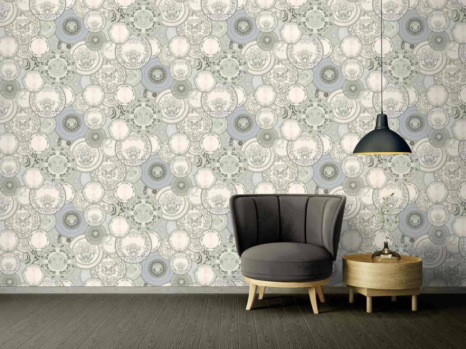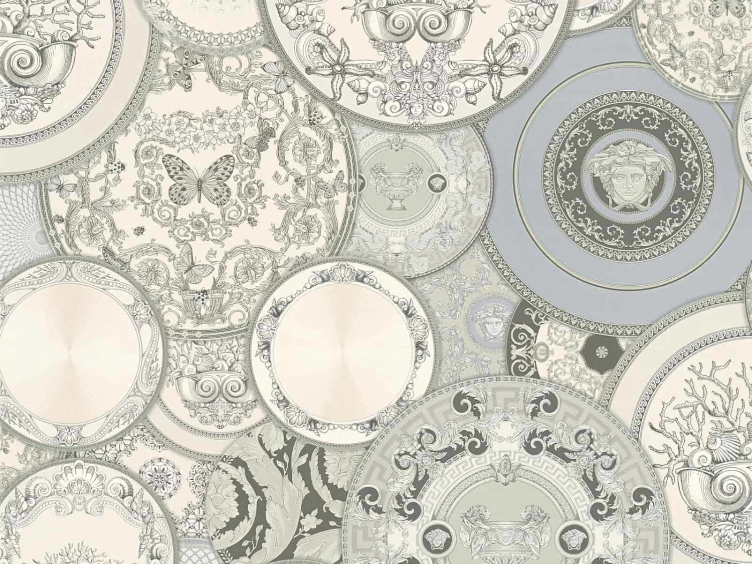 Versace Home Tapete Teller Design silber-weiß Glanz 34901-3