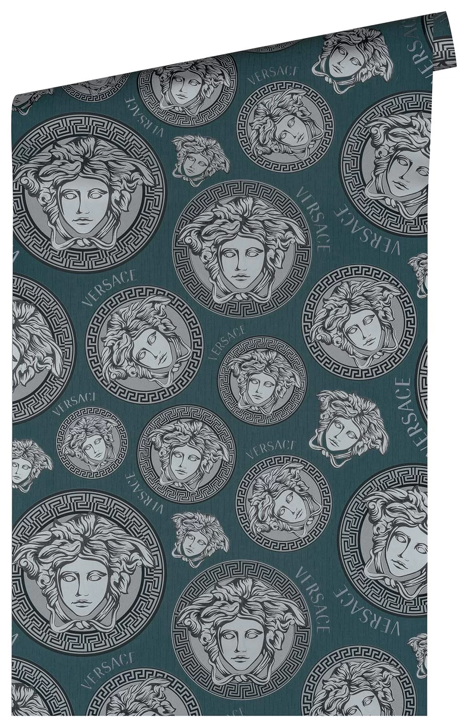 Mit den Vliestapeten der Versace Home 5 Kollektion bringen Sie den einzigartigen Stil der Luxusmarke Versace an Ihre Wände. Die Tapeten zeigen typische Versace Motive wie Medusaköpfe oder Mäandermuster. Aber auch schlichte Uni-Tapeten können Sie hier finden. Die Tapete 38611-1 in Petrol und Schwarz mit metallischen Akzenten in Silber besticht durch ein Medusa-Kopf Motiv. Lassen Sie sich von den Versace Home Tapeten überzeugen und entdecken Sie die komplette Kollektion bei uns im Shop.