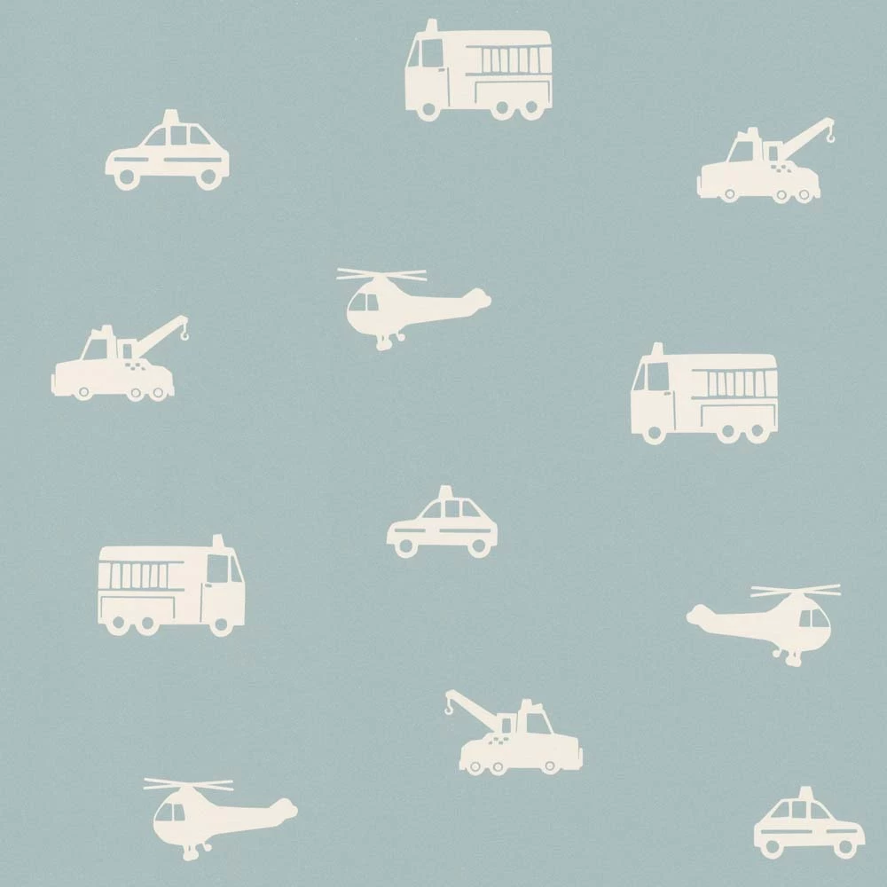 Tapete Kinder Autos Hubschrauber blau weiß World Wide Walls Little Bandits 028864