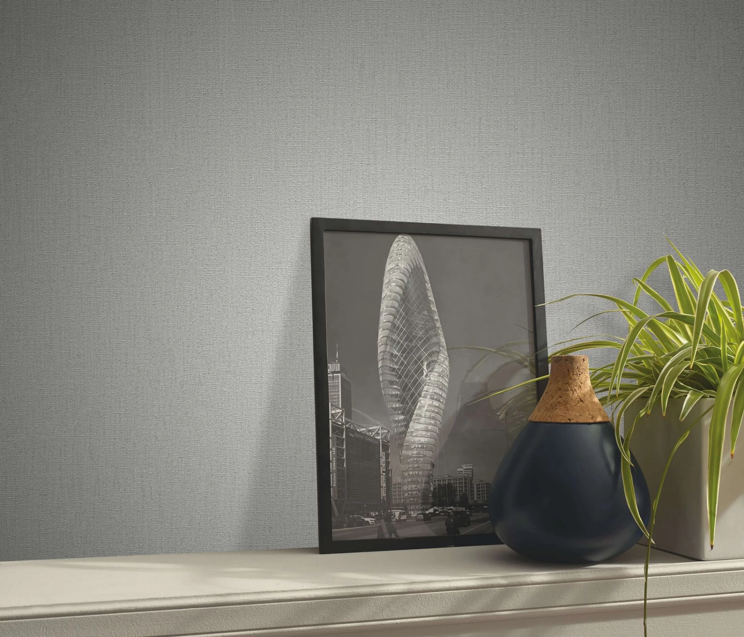 Alles andere als old-fashioned ist die Vliestapetenkollektion von Erismann mit der Serie Spotlight. Expressive Muster, natürliche Blattmotive und klassische Streifen kombiniert mit Metallic-Effekten in zeitlos schicken Farben setzen jeden Raum gekonnt in Szene. Im Mix mit einem farblich abgestimmten Uni entstehen so besonders reizvolle Kontraste. Die Tapete 10108-29 ist einfarbig in Silber mit Struktur.